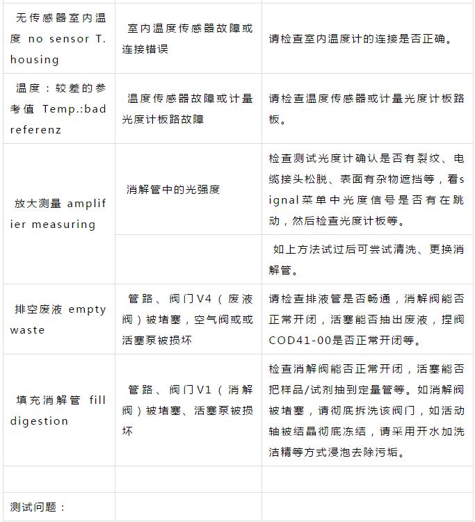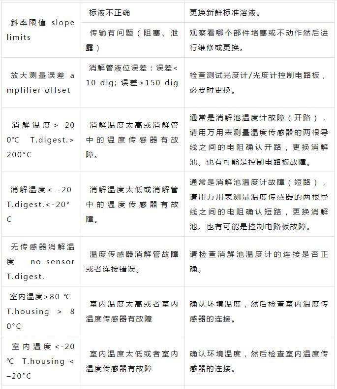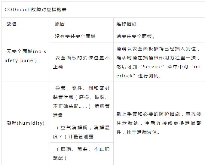 二、CODmaxII故障對(duì)應(yīng)措施表,
