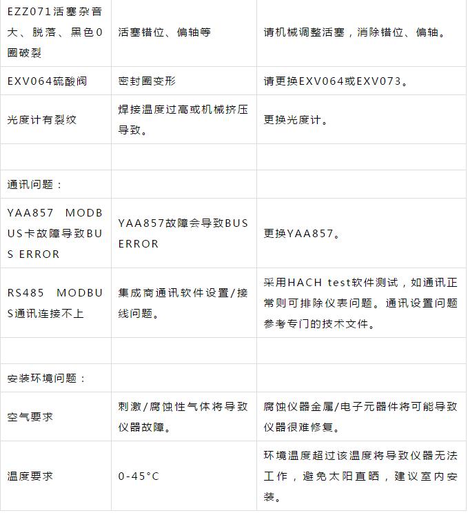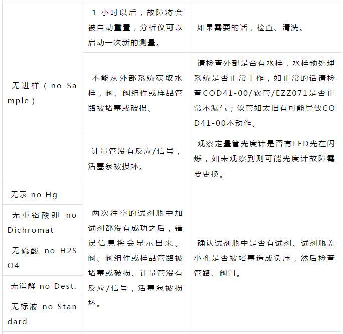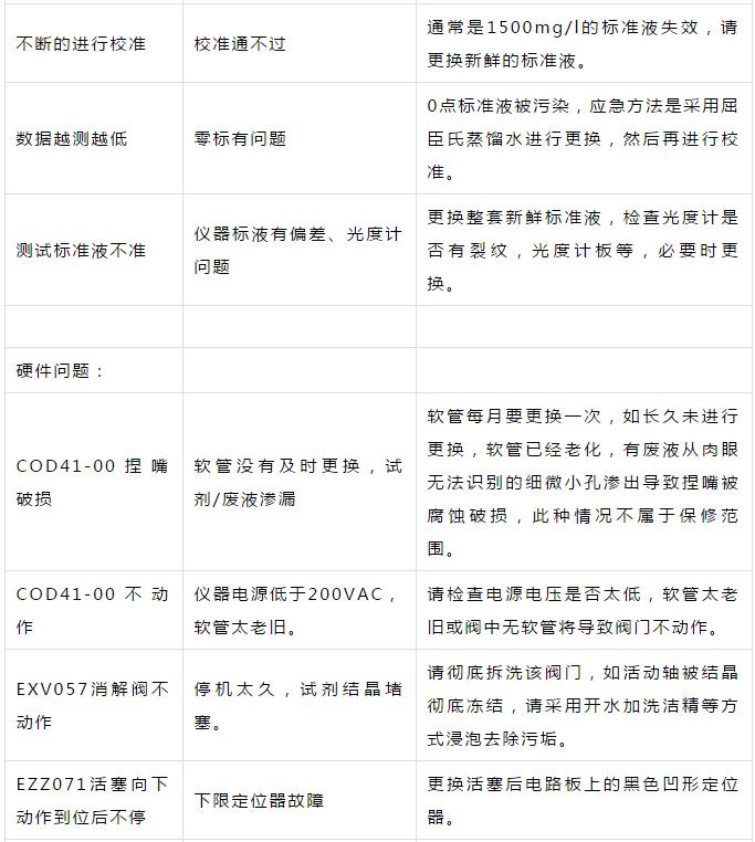 污水處理廠COD在線(xiàn)監(jiān)測(cè)常見(jiàn)故障對(duì)應(yīng)措施表